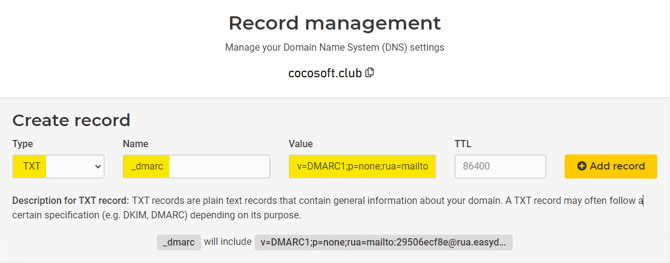 - When you directly register on EasyDMARC, our system automatically provides you a DMARC Record upon adding your domain