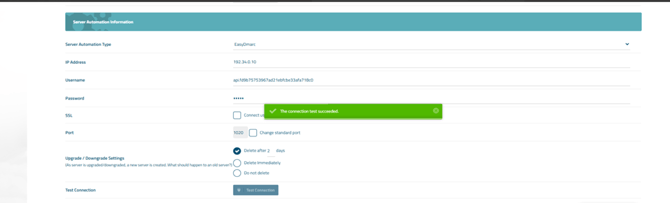 - Once the connection is established and server created, you can move to the next step for creating the package and configuring the EasyDMARC module.