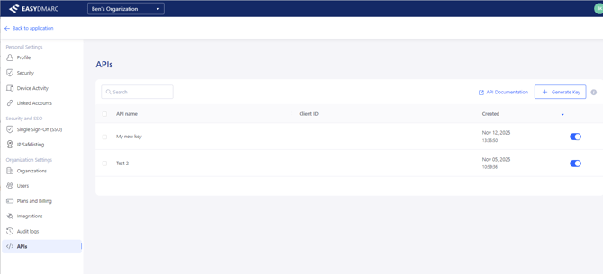 - Sign in to your EasyDMARC Account and go to our API Page.